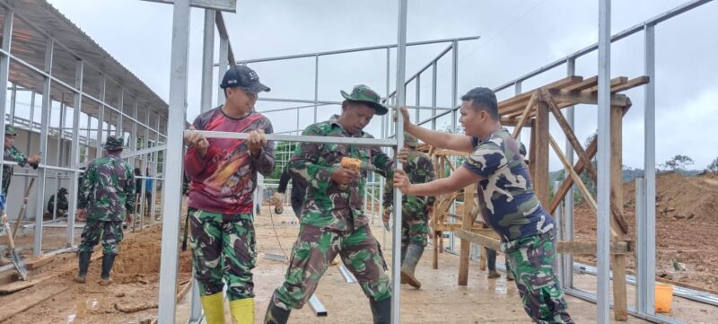 Kehadiran Satgas TNI di lokasi pembangunan Huntara dinilai mampu mempercepat proses rehabilitasi sekaligus memperkuat sinergi antara aparat dan masyarakat Nagari Koto Tinggi. (rio)