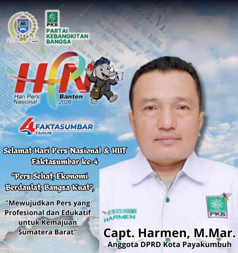 Payakumbuh || Anggota DPRD Kota Payakumbuh dari Fraksi Partai Kebangkitan Bangsa (PKB), Capt. Harmen, M.Mar., menegaskan bahwa pers tidak boleh hanya menjadi penyampai informasi, tetapi harus menjadi penjaga akal sehat publik di tengah derasnya arus kepentingan politik, ekonomi, dan kekuasaan.