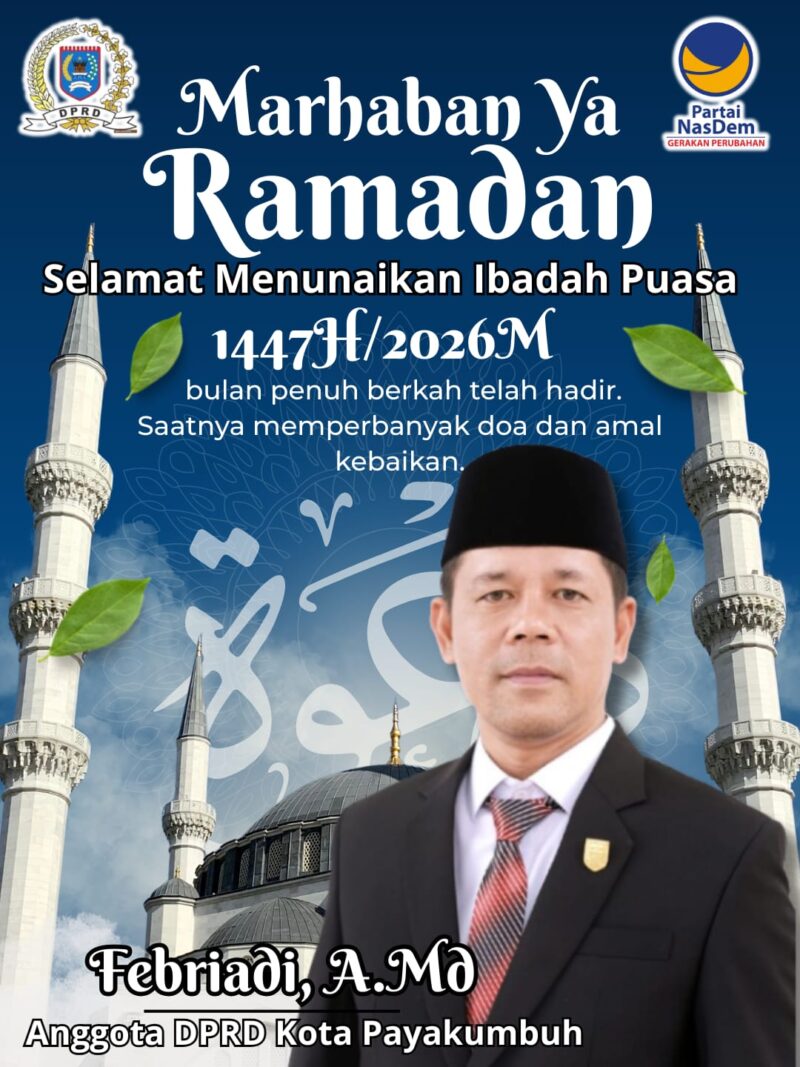 Payakumbuh || Anggota DPRD Kota Payakumbuh dari Fraksi Partai NasDem, Febriadi, A.Md, menyampaikan ucapan selamat menyambut datangnya bulan suci Ramadhan 1447 Hijriah kepada seluruh masyarakat.