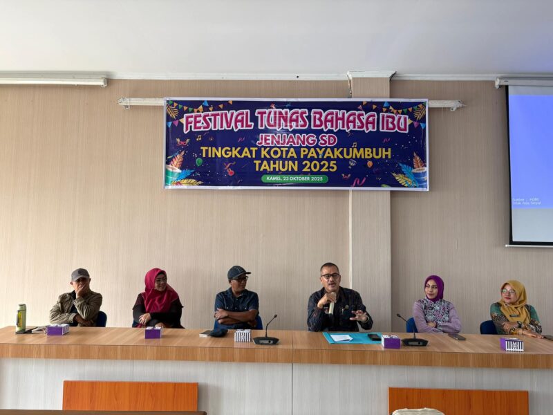 Payakumbuh || Kepala Dinas Pendidikan Kota Payakumbuh, Nalfira, S.Pd, MSE membuka secara resmi Festival Tunas Bahasa Ibu (FTBI) Jenjang Sekolah Dasar (SD) Tingkat Kota Payakumbuh, Kamis (23/10/2025) di Aula Disdik, Padang Kaduduak.