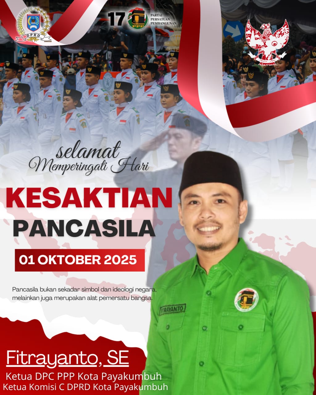 Payakumbuh || Anggota DPRD Kota Payakumbuh Fitrayanto,SE. mengajak segenap masyarakat Indonesia terkhusus kota payakumbuh untuk menjadikan peringatan Hari Kesaktian Pancasila sebagai kesempatan memperkuat persatuan bangsa.