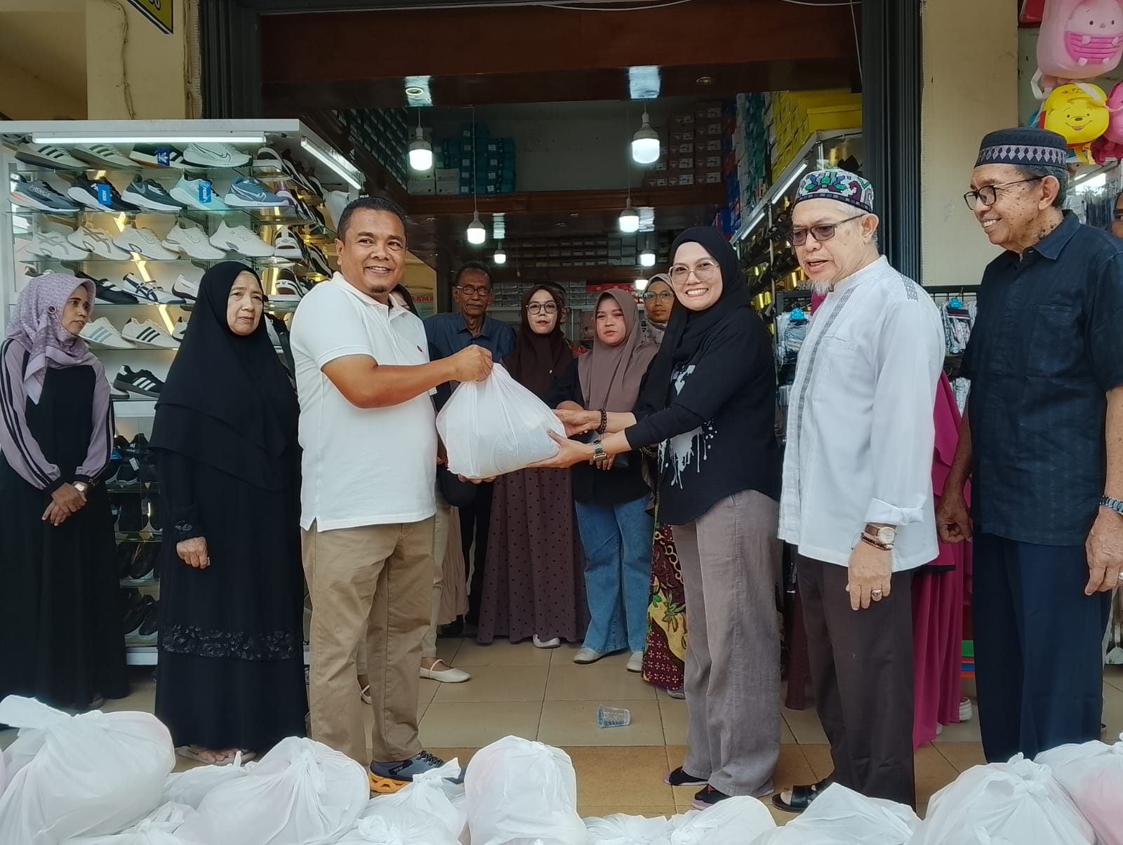 Kerjasama dengan Partamina, Hj Nevi Zuairina Salurkan Bantuan Sembako Untuk Korban Kebakaran Pasar Payakumbuh