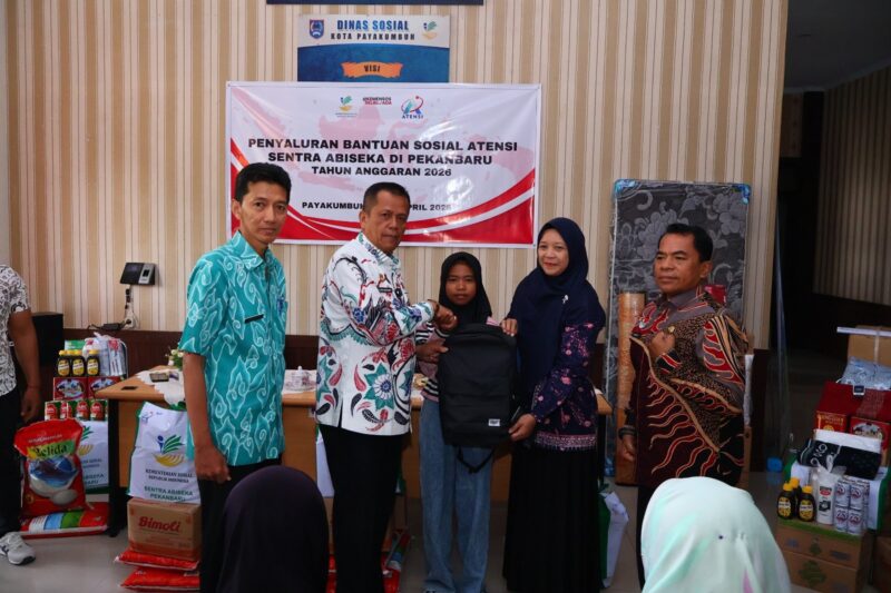 Payakumbuh — Pemerintah Kota Payakumbuh melalui Wakil Wali Kota, Elzadaswarman, menyerahkan bantuan Asistensi Rehabilitasi Sosial (ATENSI) dari Sentra Abiseka Pekanbaru, Kementerian Sosial RI, kepada masyarakat penerima di Kantor Dinas Sosial Kota Payakumbuh, Kamis (09/04/2026).
