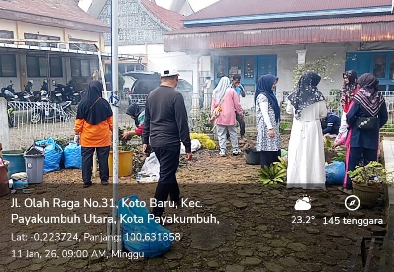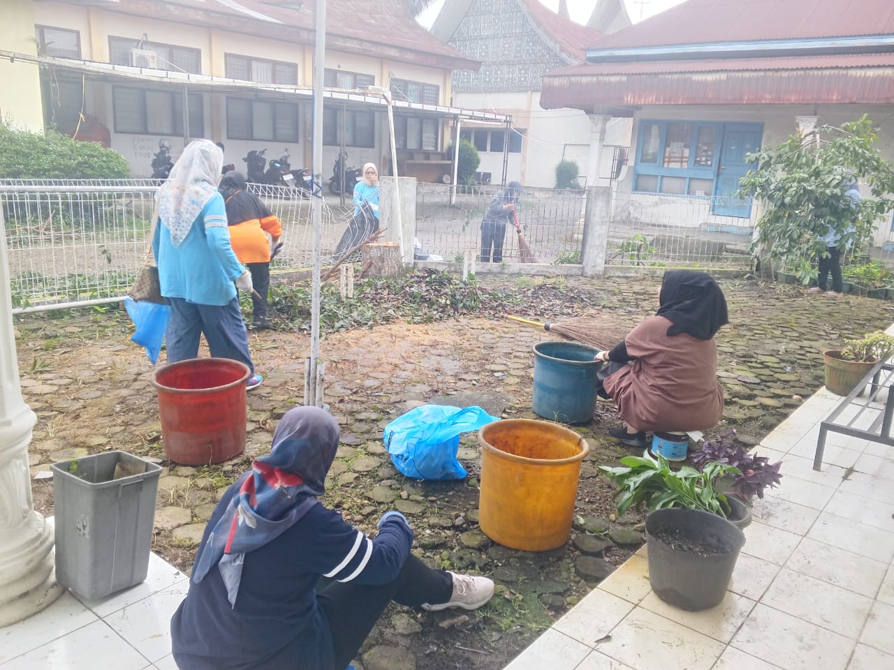 Lima Puluh Kota || Ketua Tim Penggerak PKK Kabupaten Lima Puluh Kota, Ny. Asra Yanti Safni, bersama Gabungan Organisasi Wanita (GOW) dan Bundo Kanduang, melaksanakan kegiatan gotong royong (goro) bersama membersihkan halaman kantor, Minggu (11/1/2026).