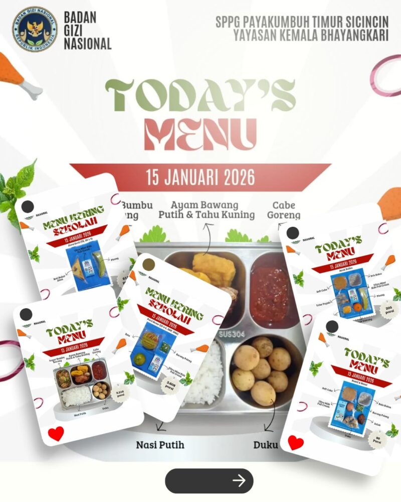 Payakumbuh || Program Makan Bergizi Gratis (MBG) kembali dilaksanakan pada Kamis, 15 Januari 2026, dengan total 3.516 penerima manfaat di wilayah layanan SPPG Payakumbuh Timur Sicincin, Yayasan Kemala Bhayangkari.