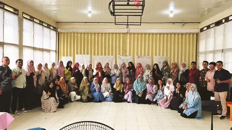 Di dalam kelompok peserta saling berbagi dan berkolaborasi dalam memecahkan suatu permasalahan setelah diberikannya materi oleh tim fasilitator yang telah ditunjuk.