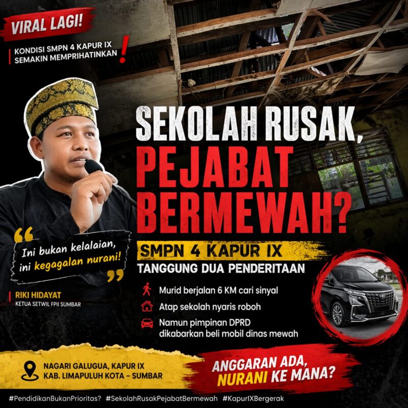 Di Nagari Galugua, Kecamatan Kapur IX, Kabupaten Limapuluh Kota, berdiri sebuah ironi yang menampar nurani: SMPN 4 Kapur IX. Sekolah ini bukan sekadar bangunan pendidikan. ia adalah potret nyata bagaimana negara bisa abai terhadap masa depan anak-anaknya sendiri.