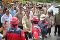 TANAH DATAR || Presiden Republik Indonesia, Prabowo Subianto meninjau langsung kondisi jalan nasional yang putus total akibat bencana hidrometeorologi di kawasan Lembah Anai, Kabupaten…