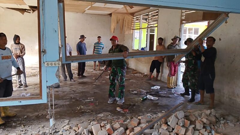 Limapuluh Kota || Personel Koramil 05/Harau bersama masyarakat Nagari Bukik Limbuku, Kecamatan Harau, Kabupaten Lima Puluh Kota, melaksanakan gotong royong pembongkaran dan pembersihan eks gedung Sekolah Dasar (SD), Kamis (18/12/2025).
